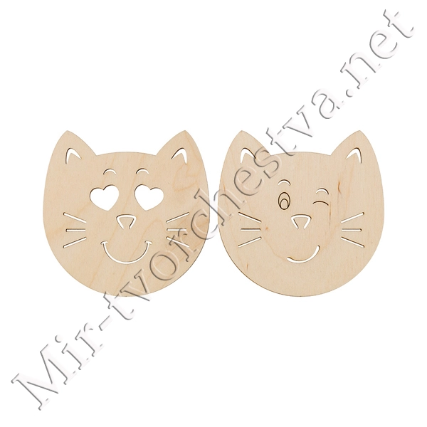 Заготовка для декорирования ВД-664 Подставка под горячее фанера d 9 см 9x9x0.3 см 0.3 см 2 шт "Кошачьи мордочки №1", Mr. Carving