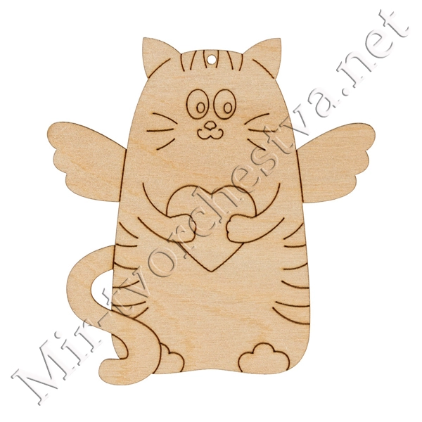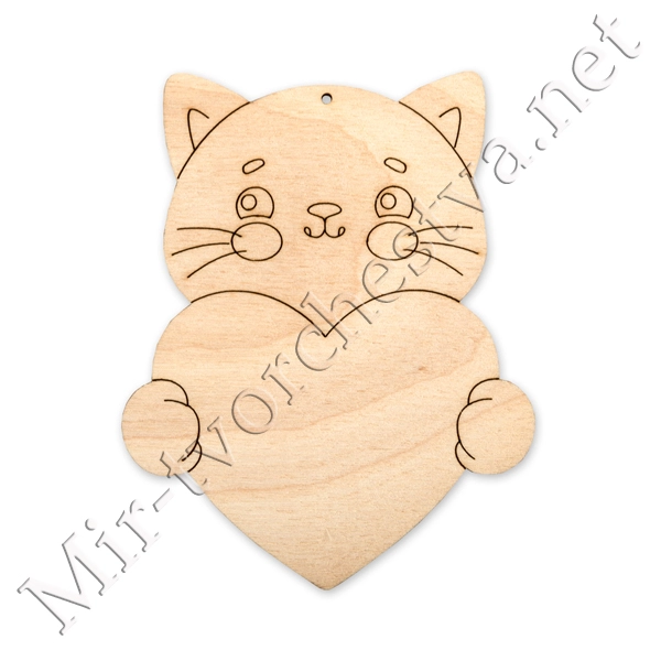 Заготовка для декорирования ВД-875 Подвеска "Кот с сердцем", фанера 10х7 см, Mr. Carving