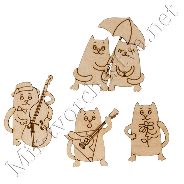 Заготовка для декорирования ВД-887 Мини-набор "Коты", фанера 3.5-5.5 см, Mr. Carving