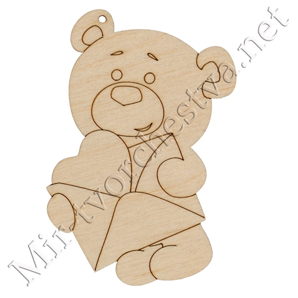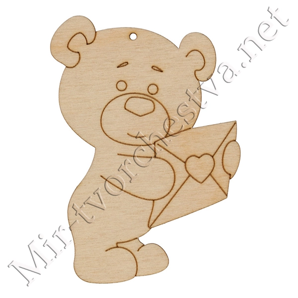 Заготовка для декорирования ВД-874 Подвеска "Мишка с письмом", фанера 9х7 см, Mr. Carving