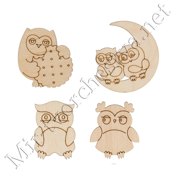 Заготовка для декорирования ВД-887 Мини-набор фанера 4x5x0.3 см 0.3 см "Совушки №1" (4.5-5.5см), Mr. Carving
