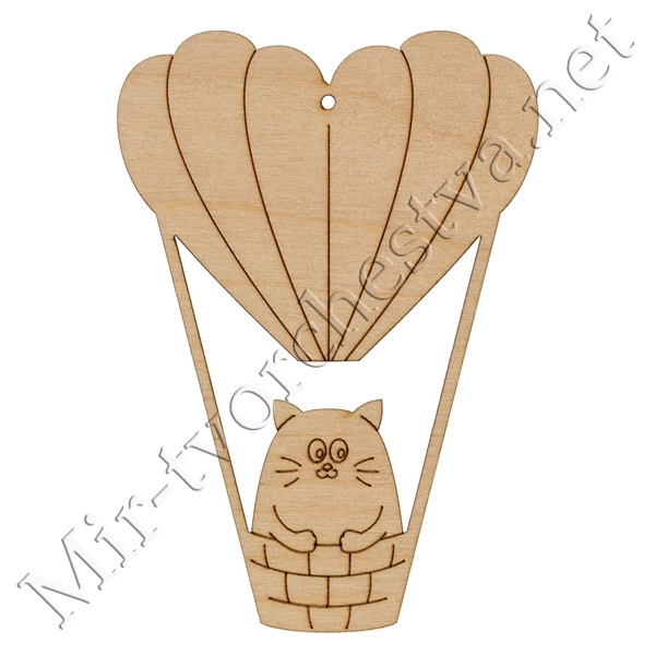 Заготовка для декорирования ВД-875 Подвеска фанера 10x8.5x0.3 см 0.3 см "Котик на воздушном шаре" (10х7см), Mr. Carving
