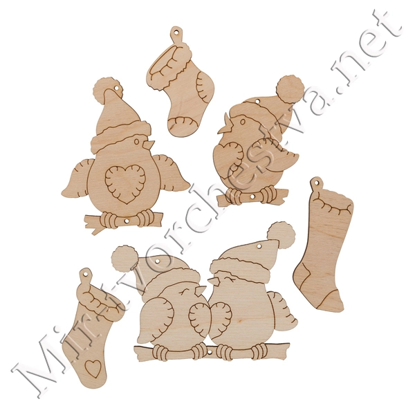 Заготовка для декорирования ВД-1010 Мини набор "Зимние птички" фанера 7.5x10x0.3 см 0.3 см, Mr. Carving