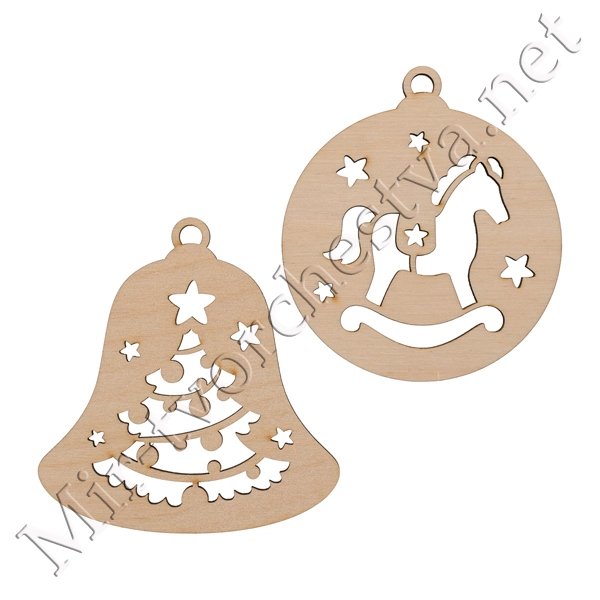 Заготовка для декорирования ВД-1011 (НГ) Подвески резные фанера, 9x9x0.4см 0.4см, Mr. Carving
