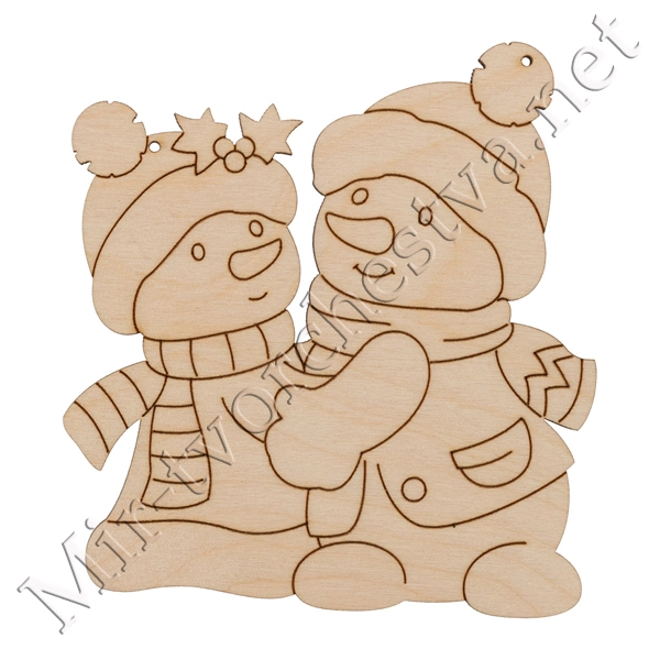 Заготовка для декорирования ВД-990 Подвеска "Влюбленные снеговички" фанера 9.5x10x0.4 см 0.4 см, Mr. Carving