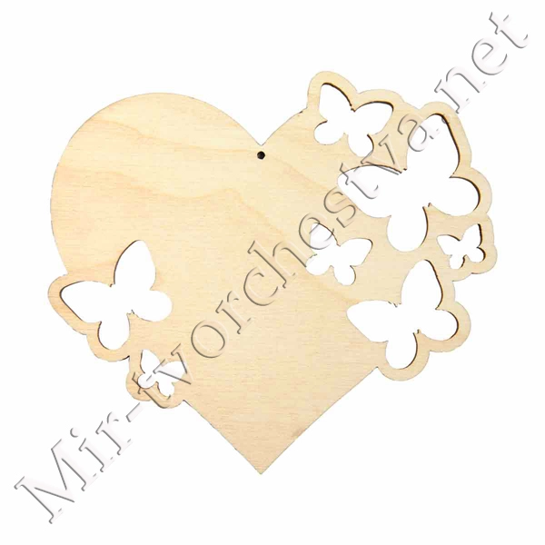 Заготовка для декорирования ВД-1078 Подвеска "Сердце с бабочками" фанера 13x10x0.3 см 0.3 см, Mr. Carving