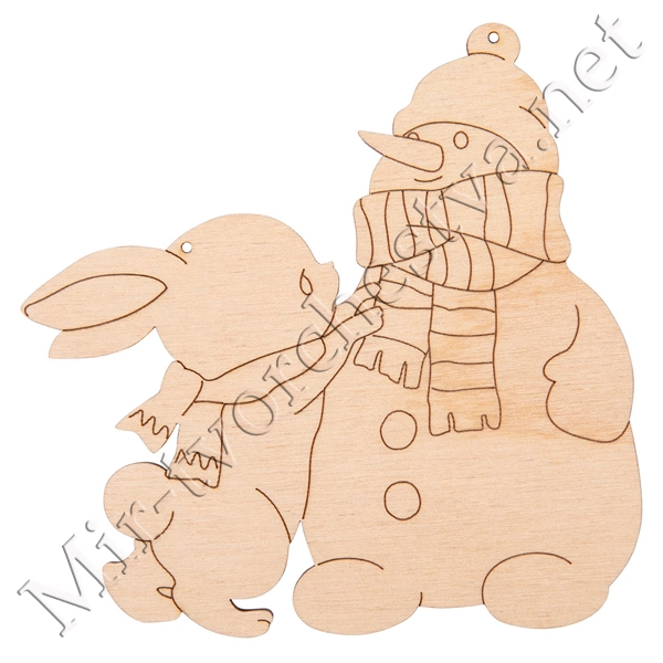 Заготовка для декорирования ВД-1097 Подвеска "Зайчик со снеговиком" фанера 10x10x0.3 см 0.3 см, Mr. Carving