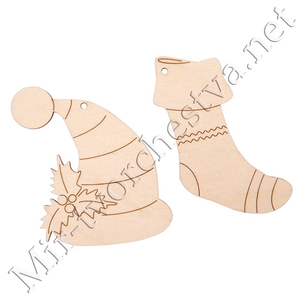 Заготовка для декорирования ВД-1117 Подвеска "Носок и шапка" фанера 9x7x0.3 см 0.3 см, Mr. Carving