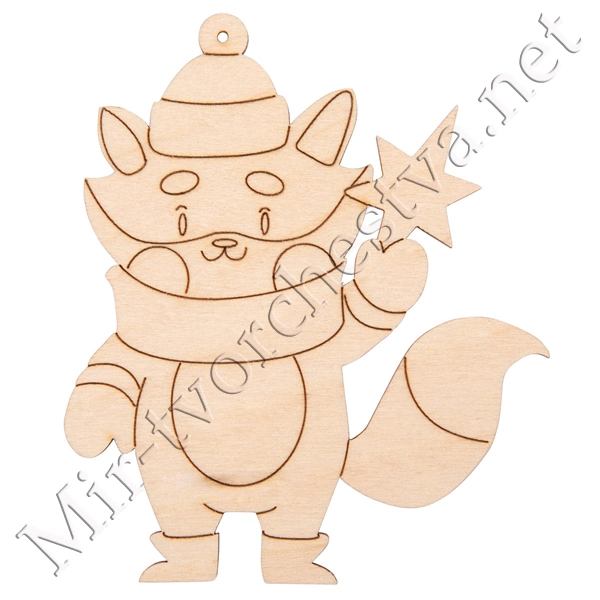 Заготовка для декорирования ВД-1095 Подвеска "Лисенок со звездой" фанера 9x8x0.3 см 0.3 см, Mr. Carving