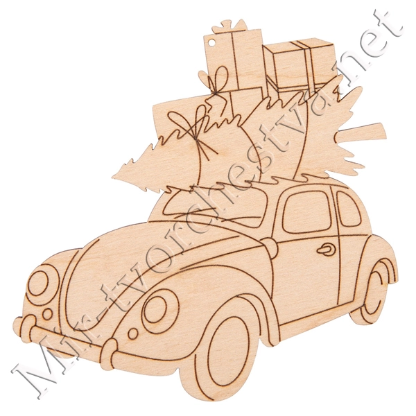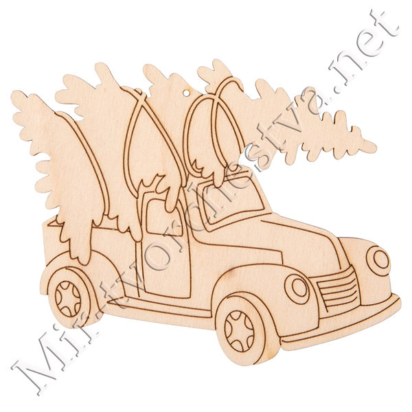 Заготовка для декорирования ВД-1106 Подвеска фанера 10x9.5x0.3 см 0.3 см "Машина с елкой №2", Mr. Carving