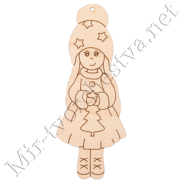 Заготовка для декорирования ВД-1109 Подвеска "Девочка с елкой" фанера 9x3.5x0.3 см 0.3 см, Mr. Carving