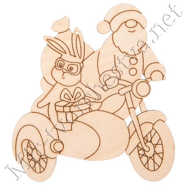 Заготовка для декорирования ВД-1106 Подвеска фанера 10x9.5x0.3 см 0.3 см "Санта на мотоцикле", Mr. Carving