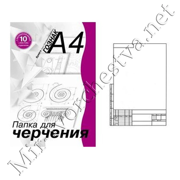 Папка для черчения студенческая с горизонтальной рамкой А-4 ПЧ4СГр 10 л.