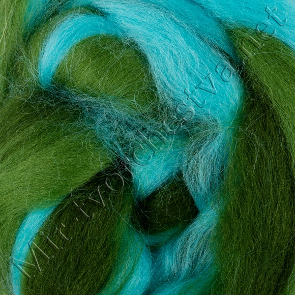Шерсть для валяния полутонкая (микс), Бирюза/Киви/Морские водоросли (6015), 50г, Gamma