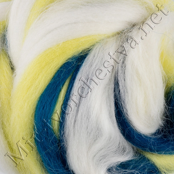 Шерсть для валяния полутонкая (микс), Жёлтый/Белый/Тёмно Синий (6036), 50г, Gamma