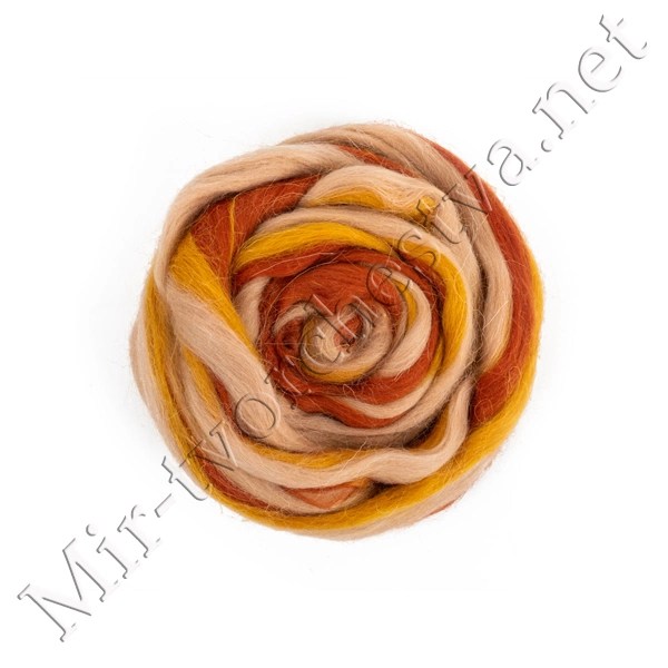 Шерсть для валяния полутонкая (микс), Терракот/Горчица/Песочный (6063), 50г, Gamma