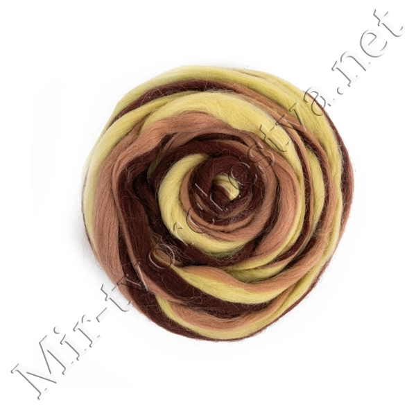 Шерсть для валяния полутонкая (микс), Липа/Шоколад/Кофейный (6084), 50г, Gamma