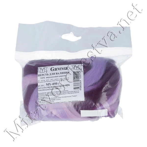 Шерсть для валяния полутонкая, Фиолетовый (0262), 50г, Gamma