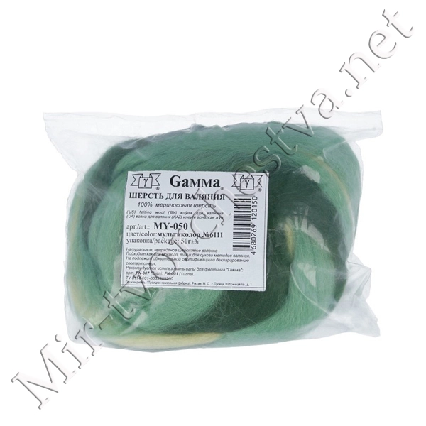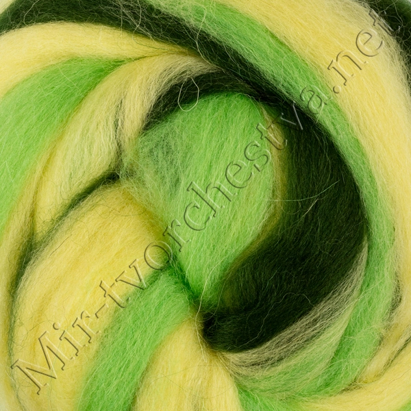 Шерсть для валяния полутонкая (микс), Зелёное яблоко/Морские водоросли/Липа (6111), 50г, Gamma
