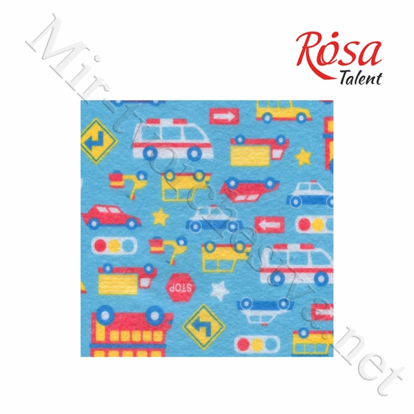 Фетр листовой (полиэстер), 21,5х28 см, принт, Автопарк, 180г/м2, ROSA Talent