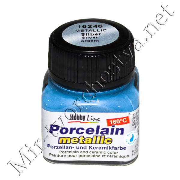 Краска по фарфору и керамике на водн.осн.(обжиг160*С) Hobby Line Metallic 20мл СЕРЕБРО