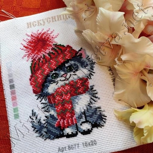 Рисунок на канве 16x20см Киса