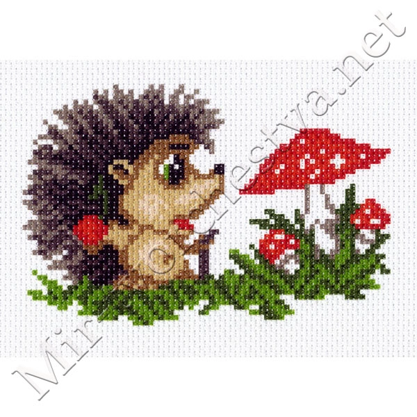 Рисунок на канве, Ёжик с грибочком (8225), 16x20см