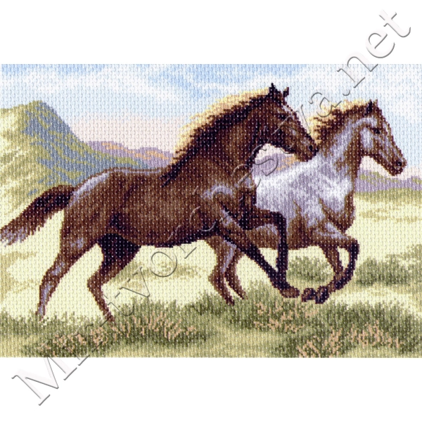 Рисунок на канве 37x49см Бегущие кони