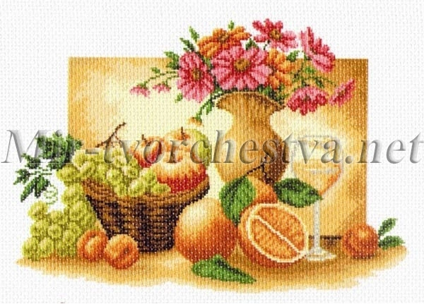 Рисунок на канве, Оранжевый натюрморт (МП-1230), 37х49см