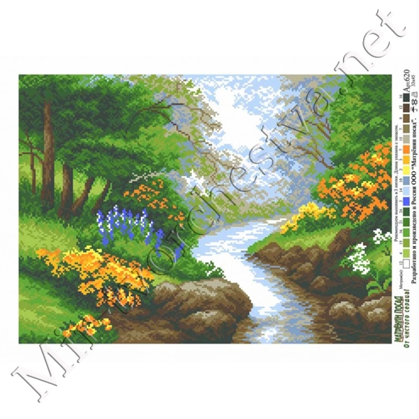 Рисунок на канве 37x49см Ручей в лесу
