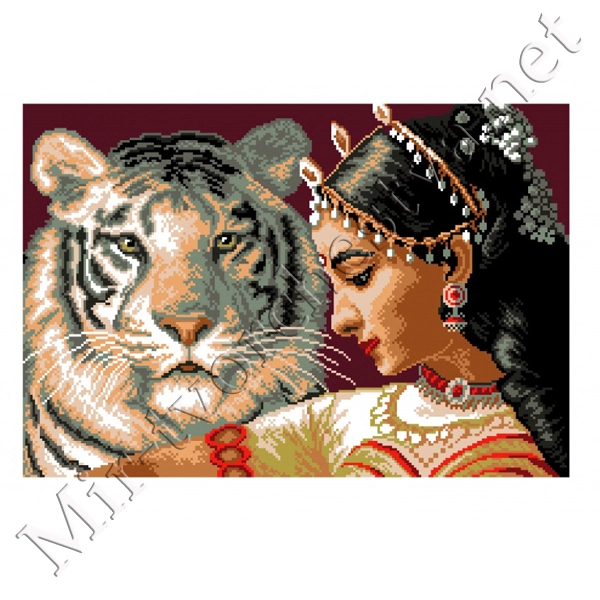 Рисунок на канве 37x49см Девушка и белый тигр