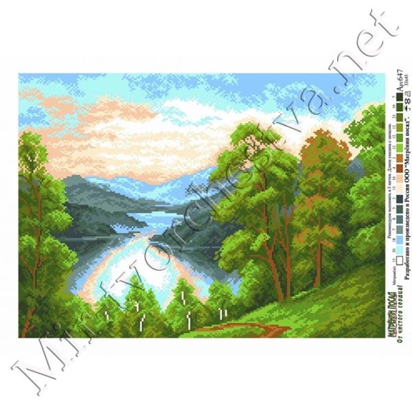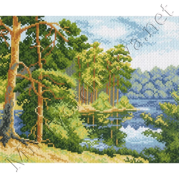 Рисунок на канве 28x37см Озеро в лесу