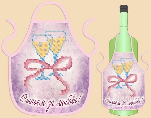 Фартук на бутылку, Выпьем за любовь! 14х16см, ФБ-007