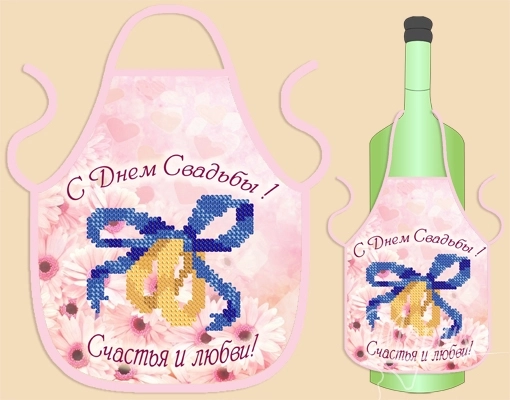 Фартук на бутылку, С Днём Свадьбы! 14х16см, ФБ-012