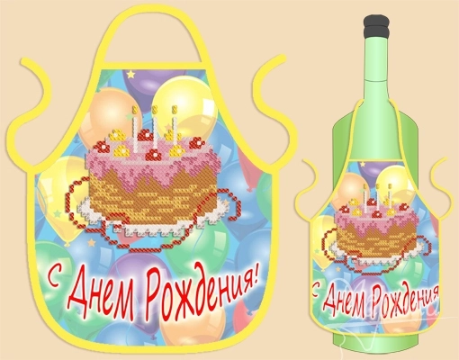 Фартук на бутылку, С Днём Рождения, 14х16см, ФБ-024