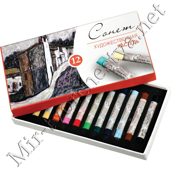 Пастель профессиональная сухая полутвёрдая квадратная 12 цветов в картонной коробке, MUNGYO