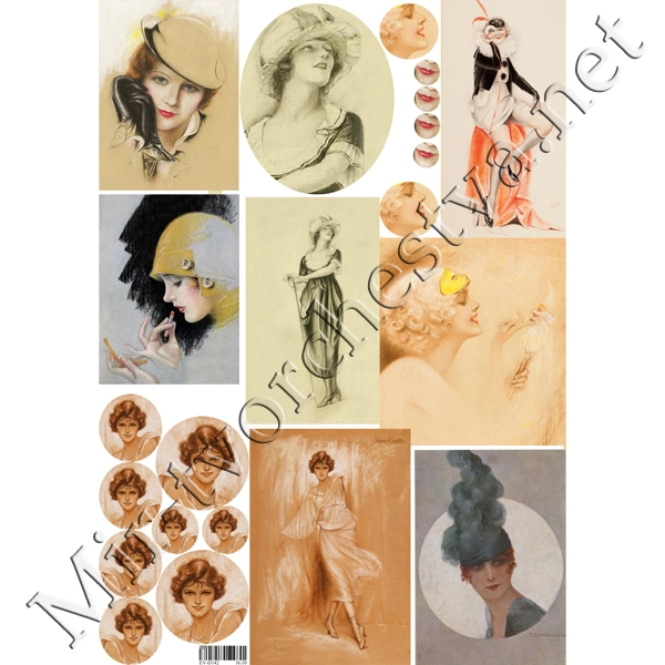 Декупажная карта 29,5х42 "ДЕВУШКИ В СТИЛЕ РЕТРО (Графика)"