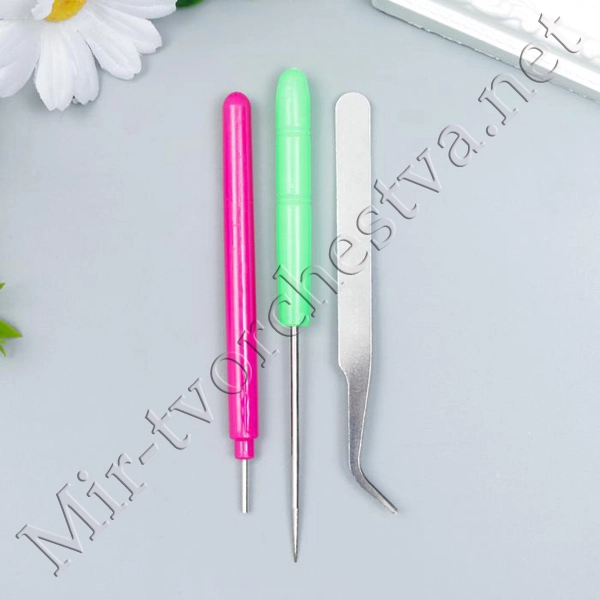 Набор инструментов для квиллинга 3 предмета: инструмент разрез 0.7см, шило и пинцет 10см