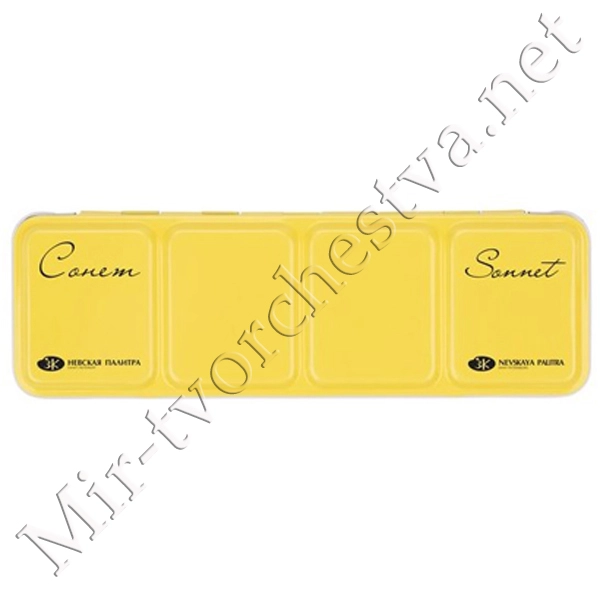 Пенал для акварели на 21 кювету, с палитрой, металлический, Жёлтый, (ru), Сонет