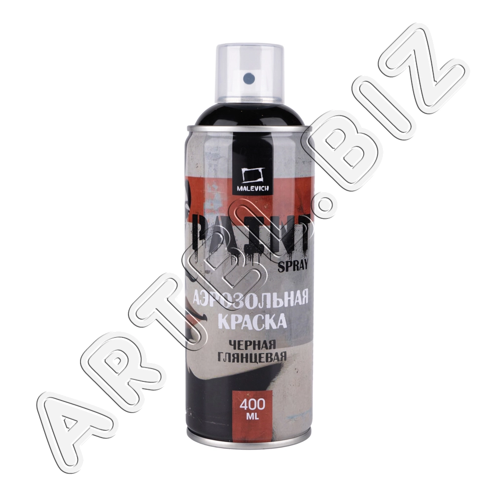 Краска в аэрозоли, глянцевая, Чёрная, 400 мл, Малевичъ