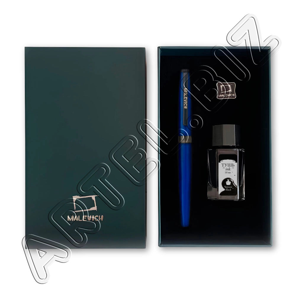 Ручка перьевая с конвертером, перо EF 0,4 мм, набор с чернилами и значком, Ультрамарин, Малевичъ