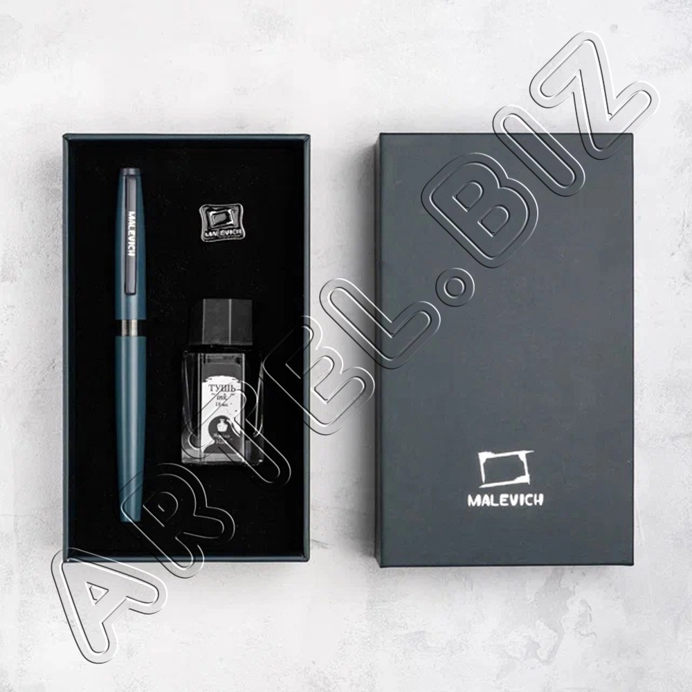 Ручка перьевая с конвертером, перо EF 0,4 mm, набор с чернилами и значком, Мокрый асфальт, Малевичъ