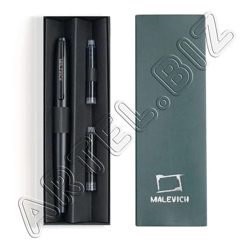 Ручка перьевая с конвертером, перо EF 0,4 mm, набор с чернилами и значком, Чёрная, Малевичъ