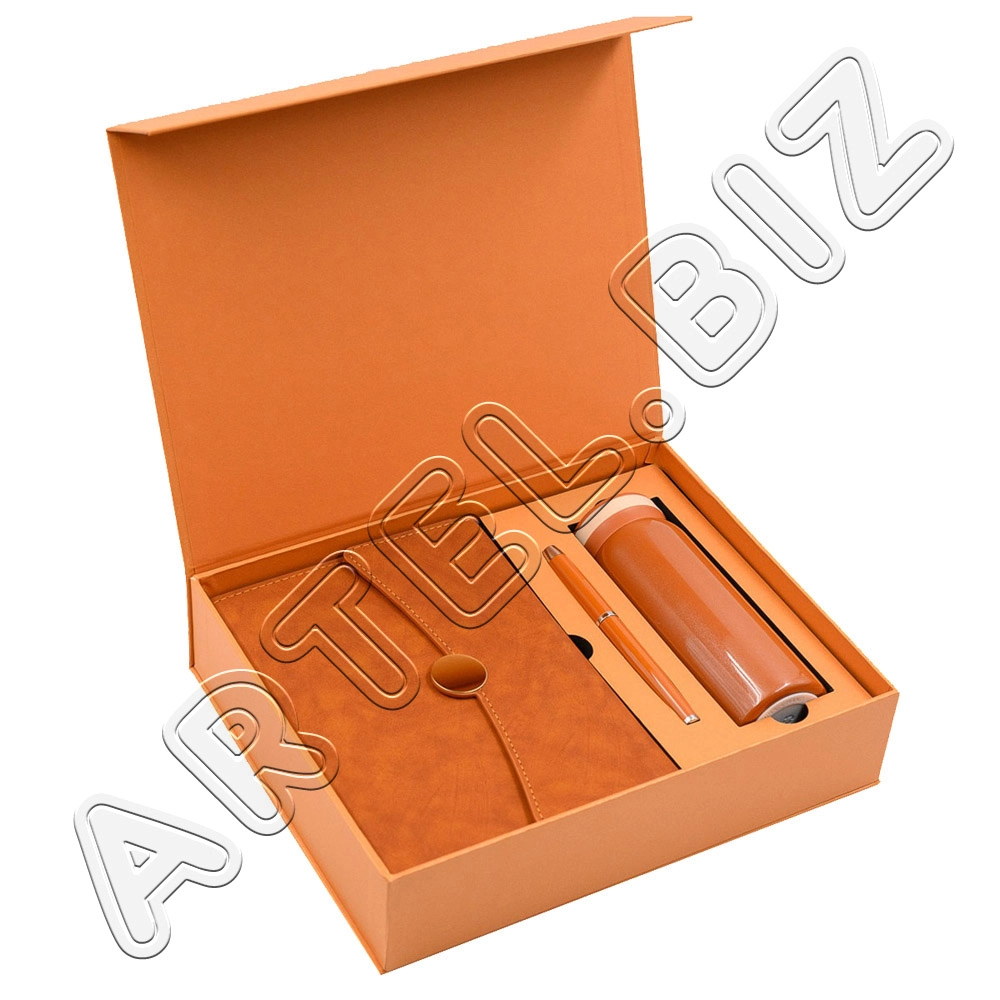 Ежедневник А5 120л. МОНТЕ ОРАНЖЕВЫЙ ЩЕРБЕТ ручка+термос в подар.упак. арт.17300