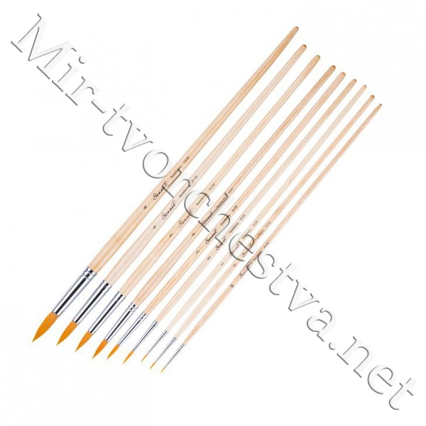 Кисть синтетика, круглая, длинная ручка, пропитанная лаком №6, Сонет