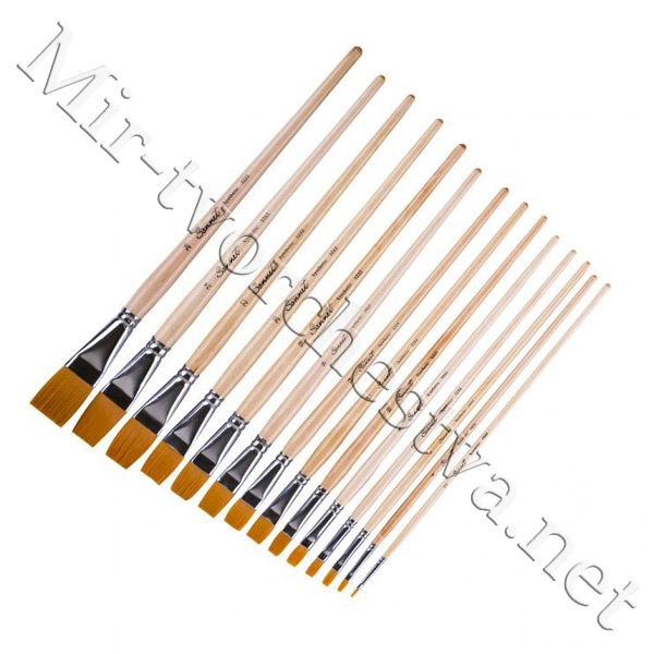Кисть синтетика, плоская, длинная ручка, пропитанная лаком №16, Сонет