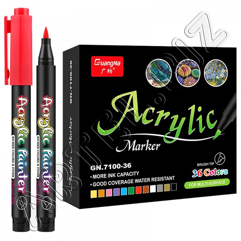 Маркер акриловый BRUSH наб.36цв наконечн.кисть 1-5мм арт.7100-36, ArtCoCo
