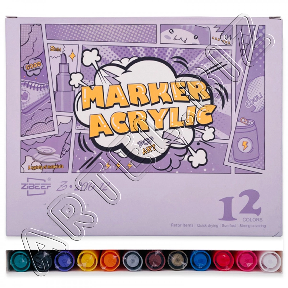 Маркер акриловый набор 12цв 1,0-2,0мм арт.200-12, ArtCoCo
