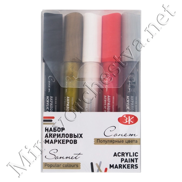 Набор акриловых маркеров "Популярные цвета", 5 цветов, Сонет