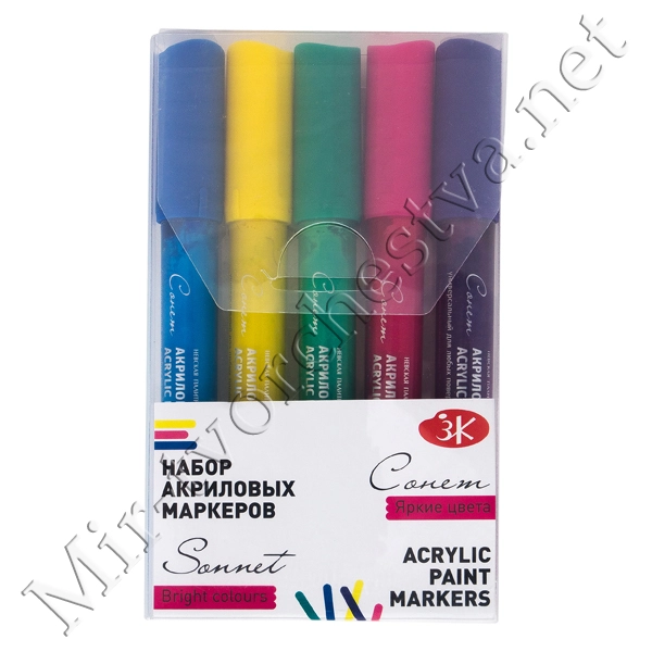 Набор акриловых маркеров "Яркие цвета", 5 цветов, Сонет